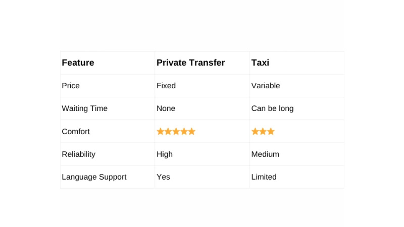 👉 Privatni transferi jasno pružaju predvidljivije i udobnije iskustvo.