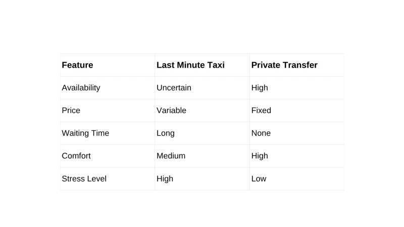 👉 Even when booking last minute, private transfers remain the most reliable option.