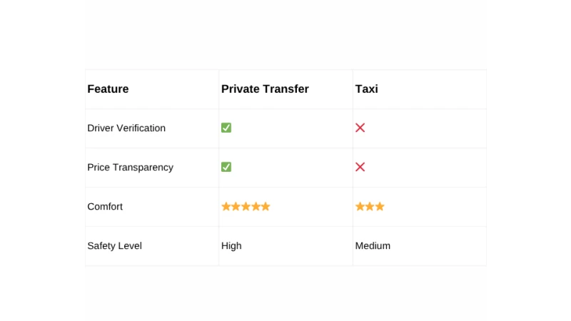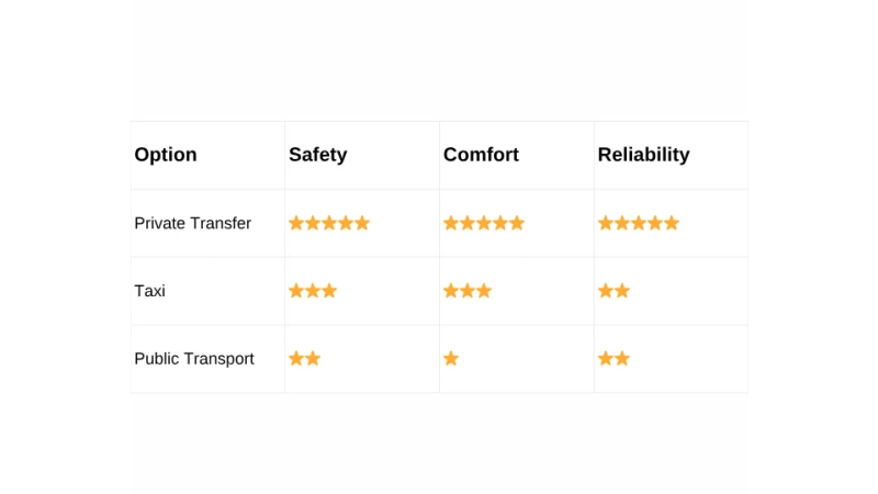 Transfer pribadi yang dipesan sebelumnya adalah opsi yang paling aman dan dapat diandalkan.