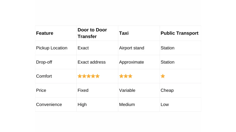 👉 Meskipun taksi mungkin tampak lebih murah, transfer pintu ke pintu menawarkan nilai yang lebih baik dengan kenyamanan dan keandalan.